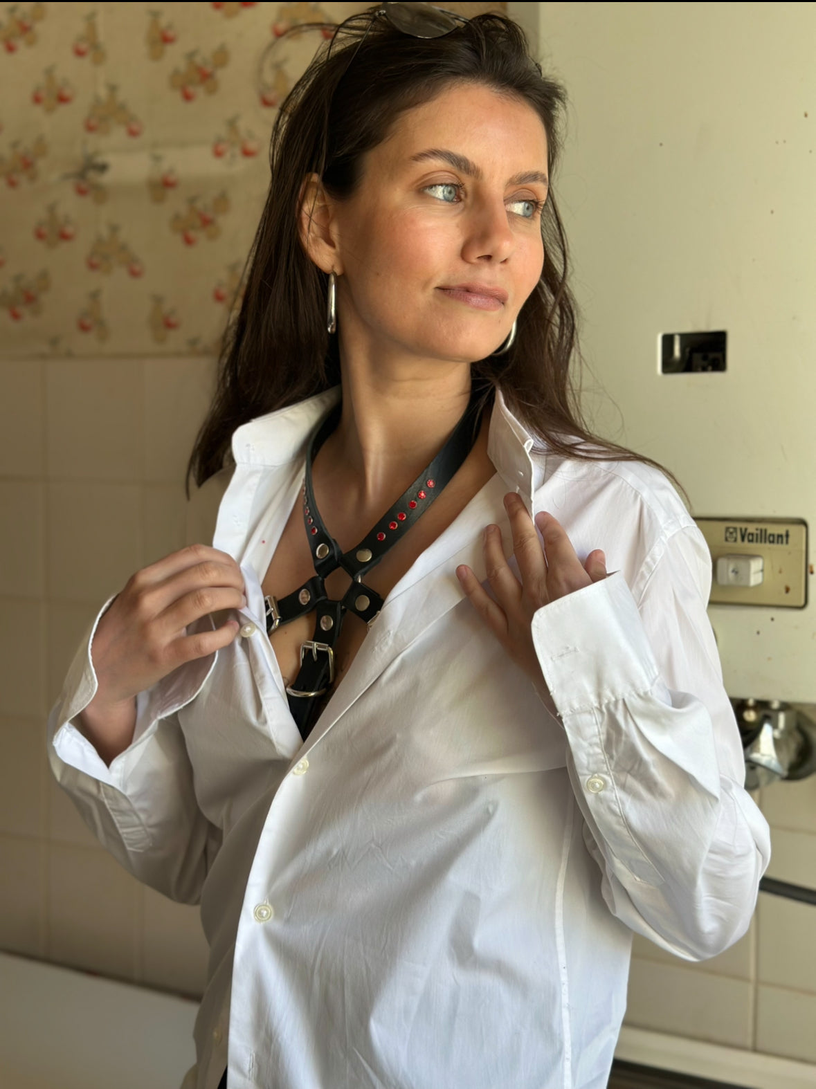 Über schwarzer Kleidung für provokante Eleganz.